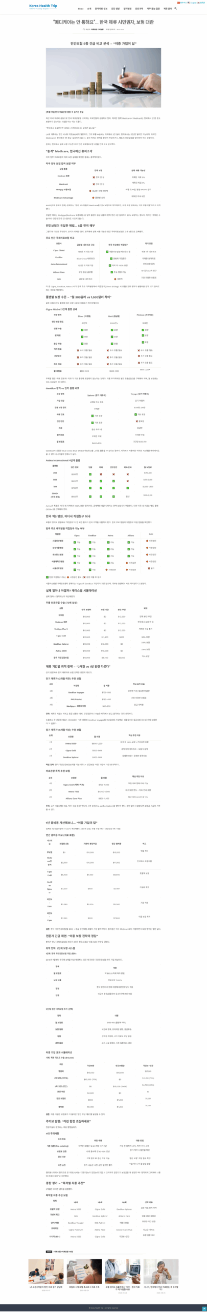 | 1위 | Aetna 5000 | $600-1,000 | 미국 외 100% 보장 + 건강검진 포함 |